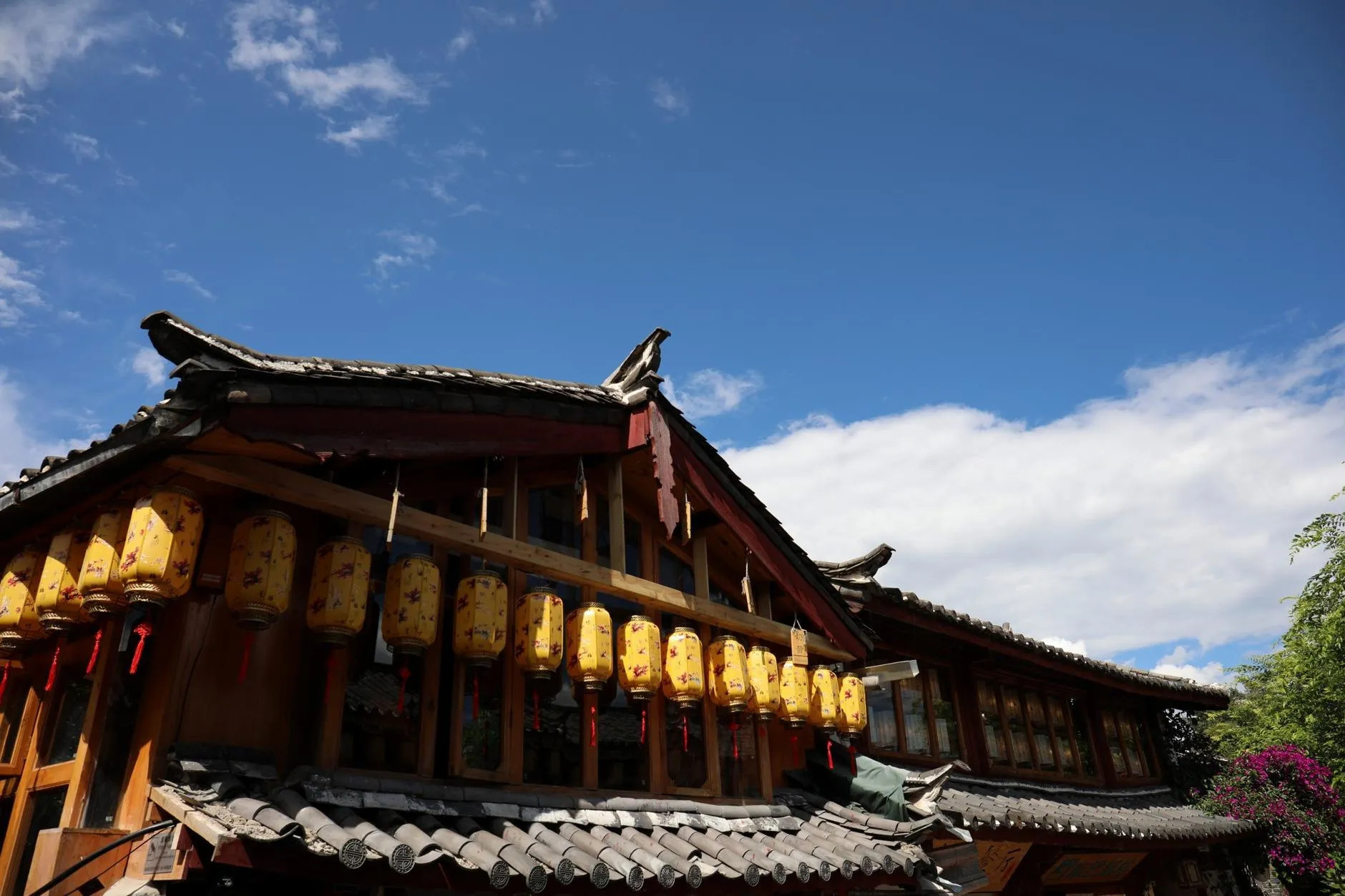 丽江古城的建筑风格独具特色,融合了汉族、藏族、纳西族等多民族的文化元素,古城内石板铺路,青瓦白墙,古朴典雅,这里有许多保存完好的明清古建筑,如木府、四方街、大研古城等,木府是丽江古城的标志性建筑,也是我国现存规模最大、保存最完整的古代纳西族贵族府邸。